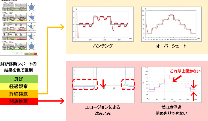 在运行中,通过阀门分析诊断服务的在线数据诊断,发现了未列入TBM(时间基准维护)检修对象的调节阀异常,于是推荐拆解、详细确认。